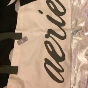 Large ivory white bag with silver sparkle bottom, great for trip to the beach, over night stays and much more!