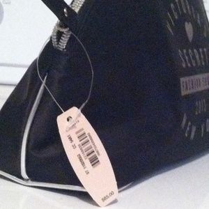 Make up bag or accessory bag. New. Black with silver print and pink inside.