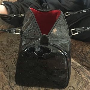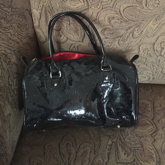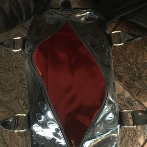 Black bag/ red lining. I used as a makeup bag. Could be used as regular purse