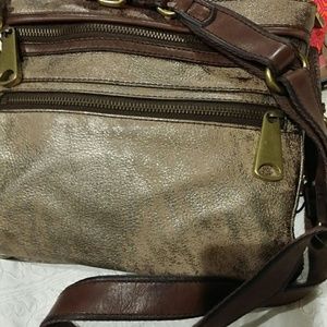Fossil leatger cross body bag with burnt gold color. Straps can work as shoulder bag