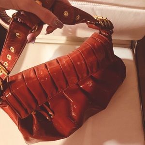 Chic ‘Retro Look’ Bag 💼 of bright currently so trendy Terracotta 🧡❤️🧡 Color!!! Shiny, patent like material. Has many many departments! Has 3 exterior pockets, all with zippers. Then major section inside, also with a zipper & a magnet button! Has 2 tiny pockets for phone & else what), and 1 more on the inside, also with the zipper!☝️Nice buckles & details throughout.😊 Condition -New, has not been used!