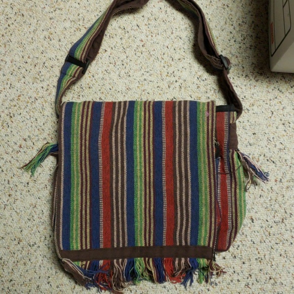 Strapped flip top purse/bag multi colored striped bag. 100% cotton. Made In Nepal