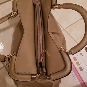 Florrie Leather Satchel. Used once only. Great Condition. Removable Strap never carried. A perfectly stylish carryall option. Luxe Leather construction and roomy interior. 5" handle drop. 21"max. Strap drop. Back pocket with zipper closure. Middle zipper compartment. 1 zipper pocket and 2 open pockets inside. Key fob. Lined.