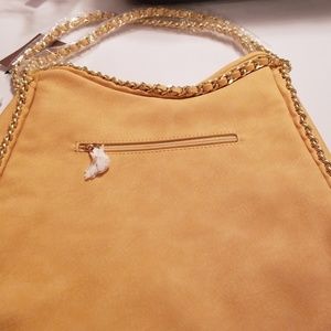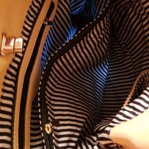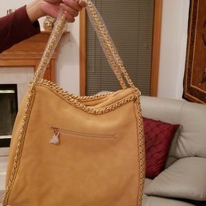 Quilted Beige Paula Tote Bag. Back Zipper pocket. Gold double chain strap. Removable/Adjustable long strap. Middle/Divider zipper compartment.1 zipper pocket and 2 open pockets inside. Beautiful roomy, functional bag. Twist lock. Soft Material. Looks high end tote bag. Dust bag included.