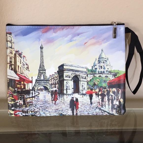 8-1/2”x6-1/2” make-up bag with a beautiful Parisian scene printed on both sides. What a classy and gorgeous way to store makeup!
