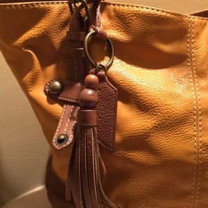 Goldenrod with tan accents, this Vintage Nine West bag will become one of your favorites! The leather is soft and supple while the detailing functionality will fit your lifestyle. Hot item for summer...go for it!