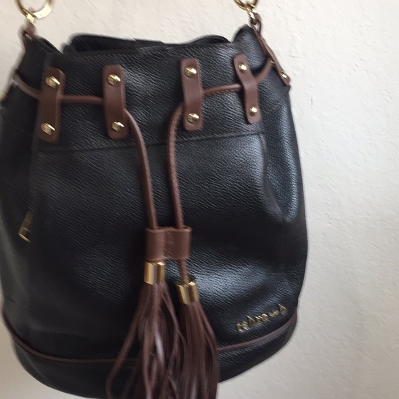 Black & Brown leather bucket bag never worn tags inside zippered pocket. Beautifully made