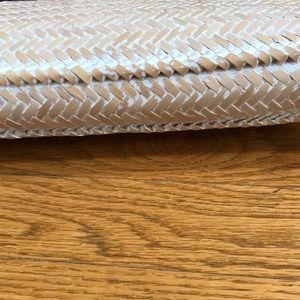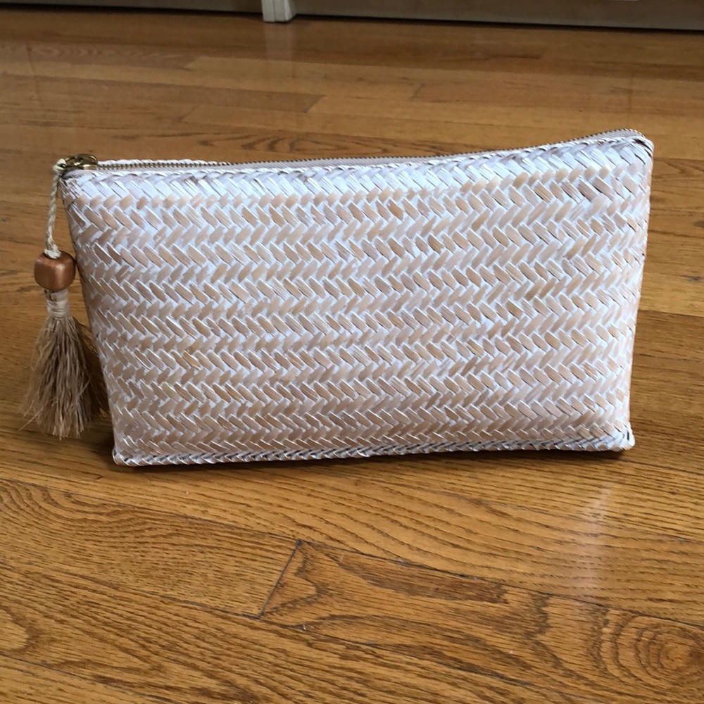Cane bag excellent condition with tassel and wooden bead tan with a whitewash. Very lightly soiled inside.