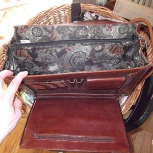 Brown leather work bag. Fine details.