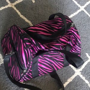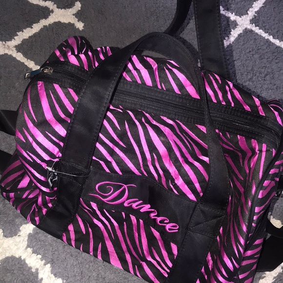 Purple zebra print bag that says dance on the front