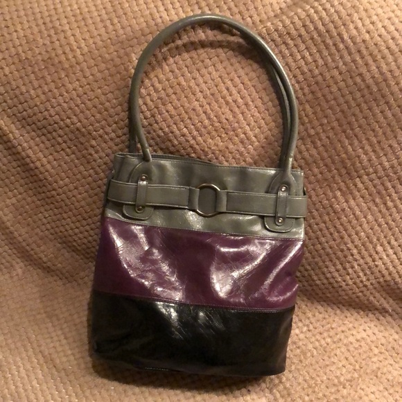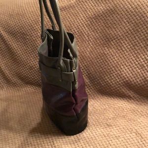 Grey, aubergine and black bag 13L x 14W x 5 D