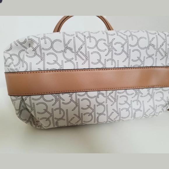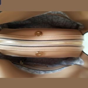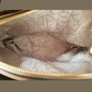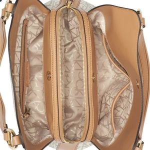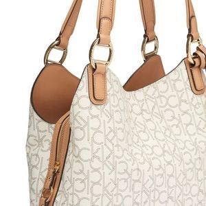 NWT $198 Calvin Klein Holly Signature Hobo Almond Khaki/Buff/Gold