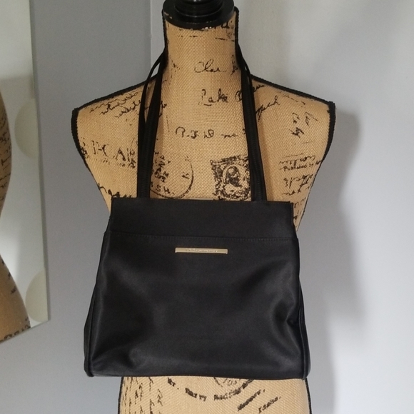 Black nylon bag. Excellent condition, 3 compartments, front middle and back ,clasp closure.