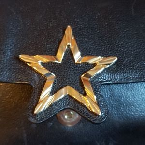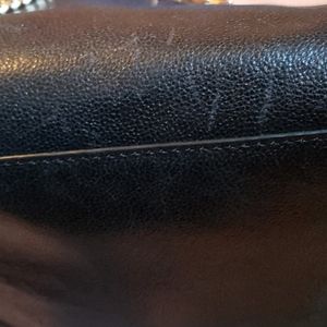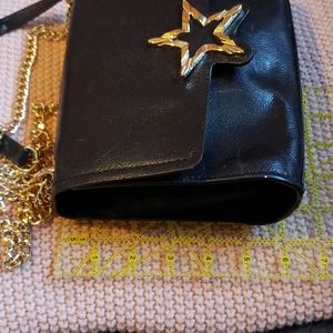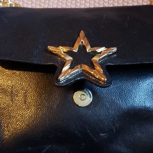 Black cow leather bag with suede sides and gold hardware. This is a very simple bag with a star detail on the front that takes it to next level. The bag is made out of a soft leather and gets easily scratched, I added pictures of any damages I noticed and the bag also has a strong leather smell