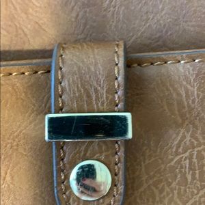 Brown leather bag with shoulder strap and satchel strap option gold details large main pocket.