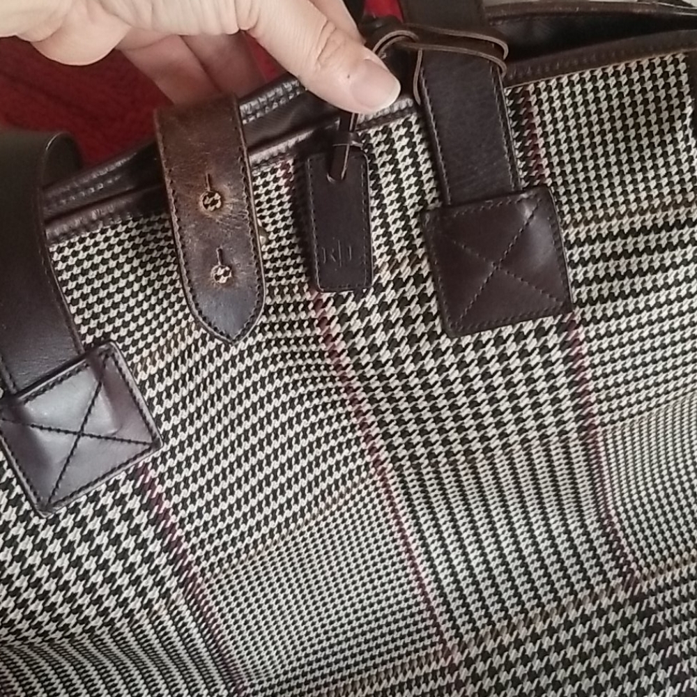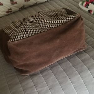 Good used condition leather, suede and fabric. Extra large tote with 3 dividers. Measurements in pics. Offers Welcome!