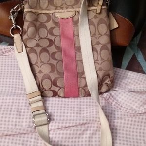Brown with Pink stripe down the front and cream straps