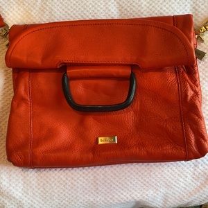 This bag is from my 100 year old aunts collection, she bought top of the line in everything. It’s likely, it’s antique or for sure, vintage. It had compartments unheard of, as well as the ability to hold with just the round handle, do a fold over for a crossbody. Topstitched, real leather, nice brushed brass hardware. Corners at the bottom show a little wear. Still has the plastic on it where the tag was.