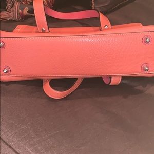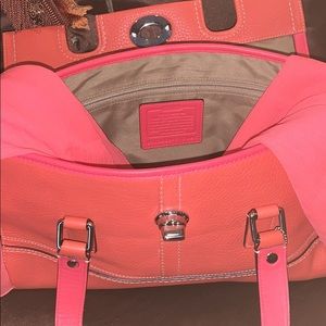 Beautiful leather bag that’s peachy orange. You get the scarf free as a small token of saying “thank you”. Tag it now and I’ll get it to you ASAP😋. Measures 16 inches long and 9 ft height.