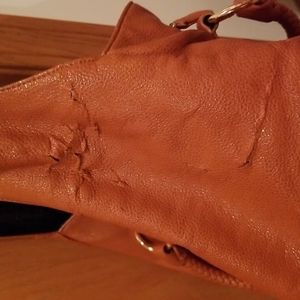 Selling As Is. Used with few defect/damaged wears on right side and both straps. Reversible purse. Zipper pockets. Double straps. Ties.