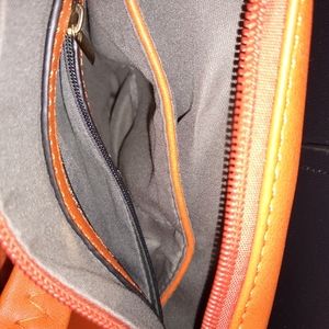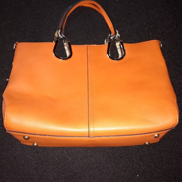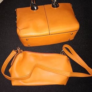 This beautiful orange in color bag gently used still have plenty more times to carry on your arm. This is two bags in one. The insert can be carried as a crossbody bag. I love this bag because of the versatility!! Smoke free and pet free home