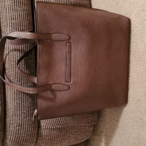 Brown London Fog over the shoulder bag. 2 large pockets in the front one in the back. Two pockets inside, Another pocket inside with a zipper. Bag has a zipper closure