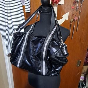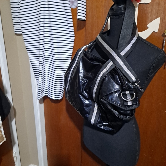 black and silver over the shoulder bag