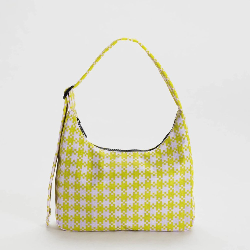 BAGGU Mini Nylon Shoulder Bag in Pink Pistachio Pixel Gingham