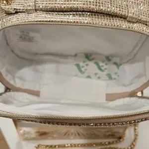 Attached non-branded gold metal hardware . Adjustable/Removable Strap. Can wear as Handbag/Shoulder/Crossbody . White Interior. Zipper closure