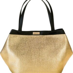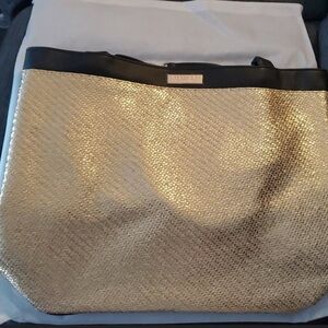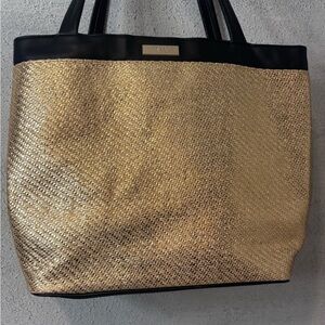 Elevate your style with this chic shoulder bag, featuring a stunning gold body and elegant black straps. Perfect for any occasion.