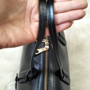 Lining and hardware with the brand logo.