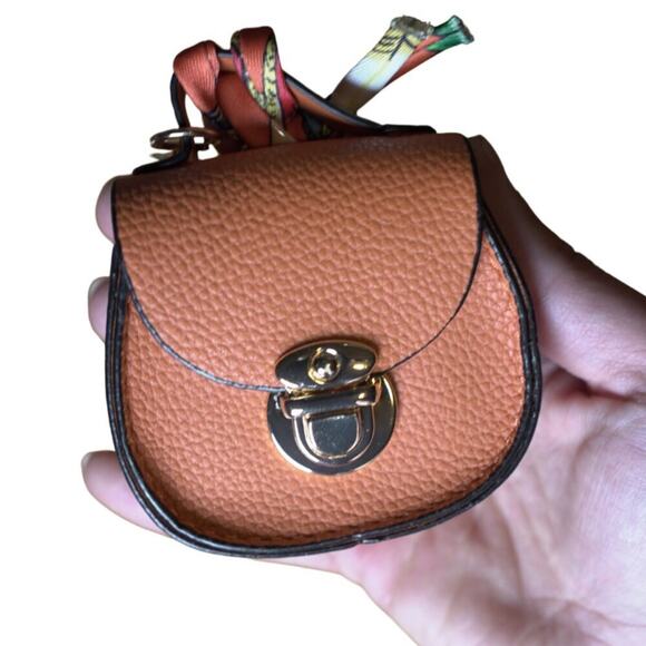 Mini Bag Keychain Coin Purse | Orange PU Leather Push Lock Clasp | Feminine Bag Charm NWT