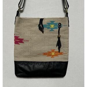 Bag RAJ Anthropologie Southwest Tribal Boho Cotton Leather Aztec Adj Strap EUC