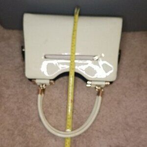 High quality synthetic patent leather with fabric lining. Top zipper closure. Classic gold hardware.