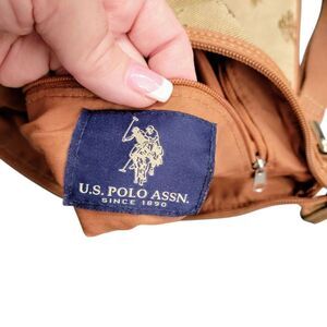 Bag U S Polo Assn Signature Neutral Tan Crossbody Bag in good condition. Small separation of seam inside on cell phone pocket. Adjustable shoulder strap. Measures 9.5x9.5 See photos for details