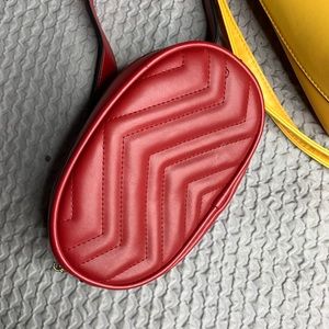 2 bags, super cute, red one is a fanny pack and the yellow one is a backpack/side bag
