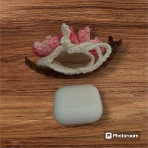 Hand crafted Purse Charm/Ear-pod Pouch. This little bag can hold anything that you want that is small ie lip gloss, a pill box, quarters for ALDI’s cart or anything else that you don’t want to have to dig around in your purse for.