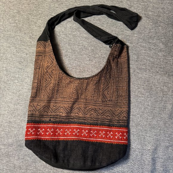 Bag with zipper closure and small inside zip pocket - Brown with red/orange trim