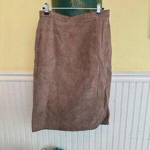Brown Suede Knee-Length A-Line Skirt By Bagatelle Size 12 Made In Korea With Back Zipper Closure
