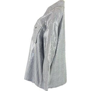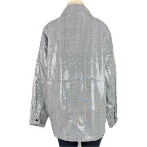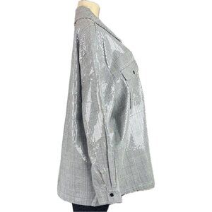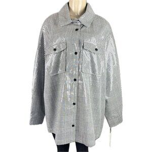 ITEM: Bagatelle Collection Jrs +2X Gray/White Button Down Checkered Sequin Collar Pockets Long Sleeve Shacket