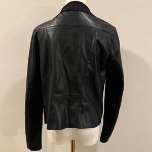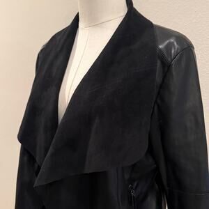 • Bagatelle Collection black faux leather + faux suede draped-front jacket