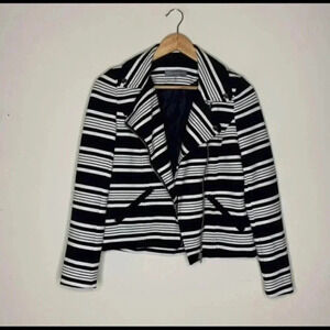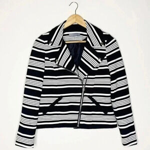 Bagatelle Black White Stripe Moto Zipper Jacket Coat Size Small