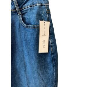 New Bagatelle Boot Cut High Waisted Mom Denim Jeans, size 28. Nice stretchy 5 pocket denim, cotton elastine blend in a medium wash. Long inseam