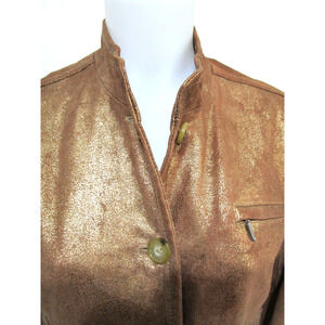 Bagatelle Bronze Shimmering Metallic Soft Leather Jacket Women Sz XL