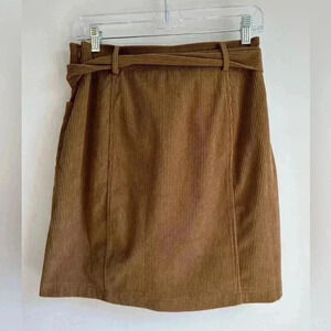 Bagatelle Brown Belted A Line Ribbed Corduroy Mini Skirt Size XS NWOT