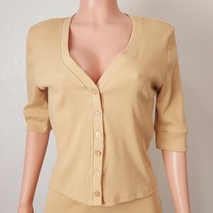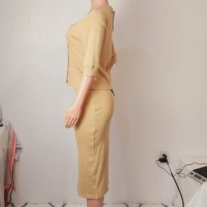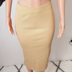 Bagatelle Camel Tan Stretch Cotton 2Piece Midi Pencil Skirt Top Set Sz: S