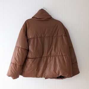 Bagatelle Caramel Brown Oversized Faux Leather Button Down Puffer Jacket, size L
