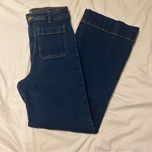 Bagatelle Collection 12” High-Rise Wide-Leg Patch Pocket Jeans Sz 26 Dark Blue