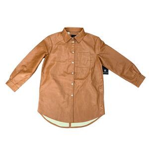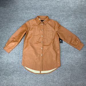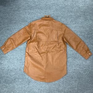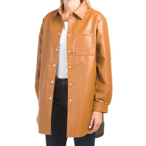Bagatelle Collection Faux Leather Shacket Women M Medium Camel Snap Button Vegan