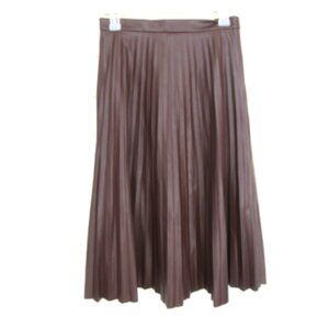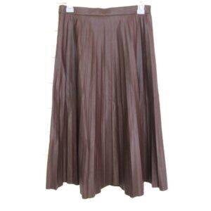 Bagatelle Collection Mocha Brown Faux Vegan Leather Pleated Midi Skirt